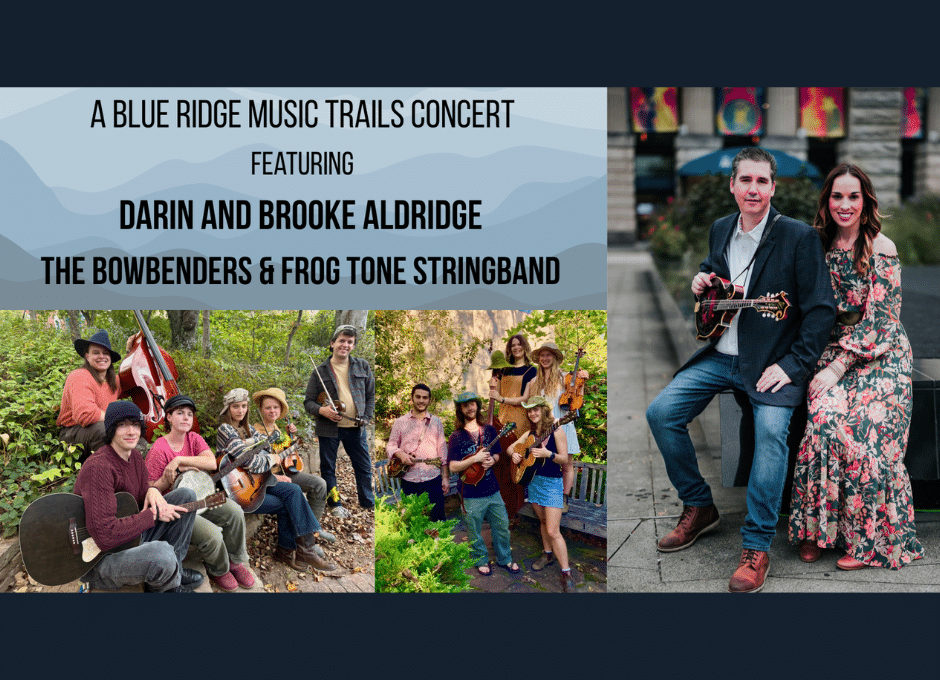 The Blue Ridge National Heritage Area (BRNHA) is proud to announce a special concert here at White Horse Black Mountain, featuring the acclaimed, Grammy-nominated bluegrass duo Darin and Brooke Aldridge. Proceeds from the show will directly support the organization’s Blue Ridge Music Trails, which preserves and promotes the traditional music of Western North Carolina. The show is part of the Asheville Sessions Celebration, a four-day event from November 6 to 9, commemorating the 1925 Asheville Sessions, the first collection of recordings that captured Appalachian music.