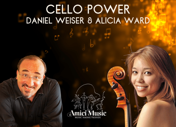 AmiciMusic, the award-winning chamber music organization that started in Asheville, returns for another exciting concert on Tuesday, March 31 at 7:00pm entitled “CELLO POWER.” The amazing cellist, Alicia Ward, from Baltimore will return to perform with pianist and Artistic Director Daniel Weiser in a thrilling program featuring a late Sonata by Claude Debussy, a lyrical work by Robert Schumann, a virtuoso gem by Gaspar Cassadó, and the incredibly powerful Sonata by Edvard Grieg. These are all expressive and Romantic works that also highlight the true power of the cello. You won’t want to miss it!!