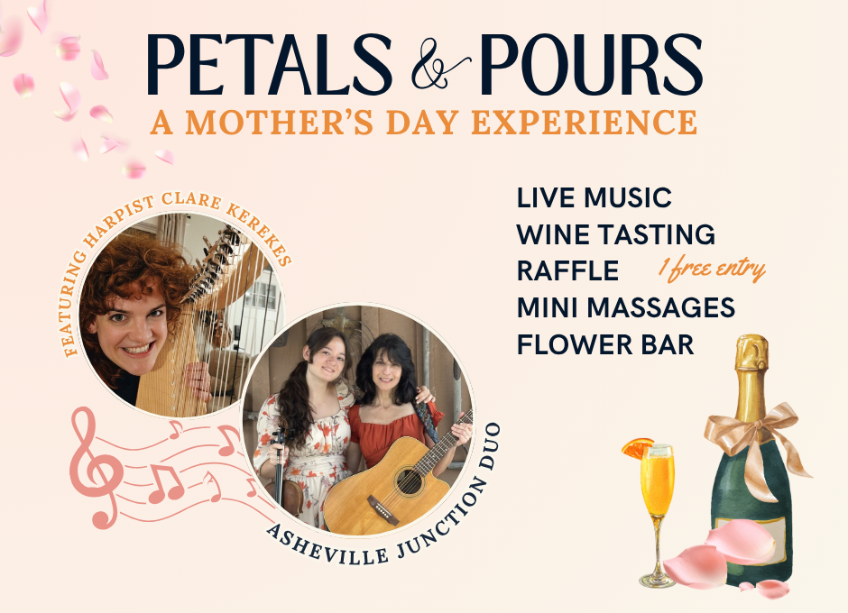 Enjoy live music from harpist Clare Kerekes kicking off the event leading up to the the soulful performance of mother-daughter duo Asheville Junction, Tierra and Maria Raiti.