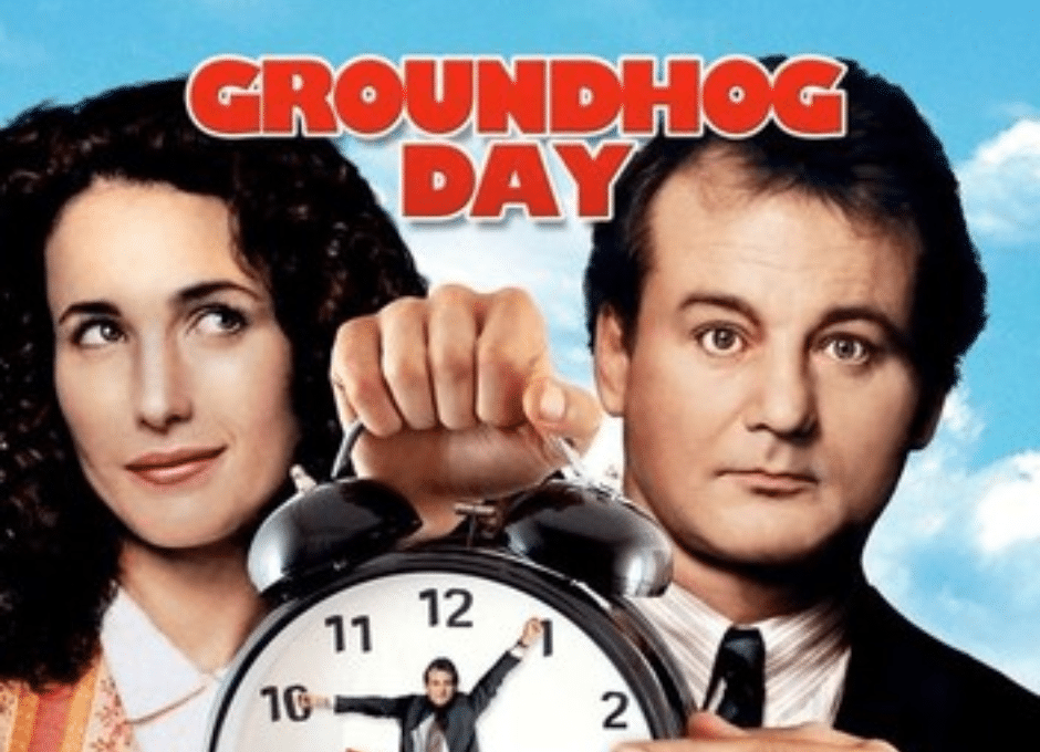 Phil (Bill Murray), a weatherman, is out to cover the annual emergence of the groundhog from its hole. He gets caught in a blizzard that he didn’t predict and finds himself trapped in a time warp. He is doomed to relive the same day over and over again until he gets it right.
